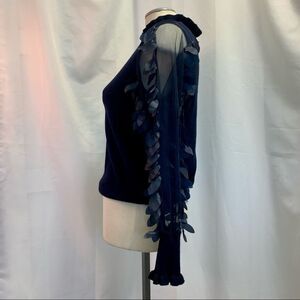 Wild Flower navy Leaf Mesh Sleeves High Neck Jumper Sz XS .
