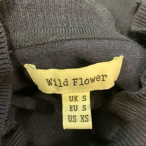 WILD Flower navy Leaf Mesh Sleeves Jumper Sz XS