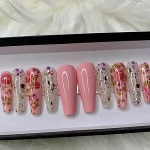 Pink Flower Custom Press On Nails | High Quality Nails | Handmade