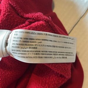 Hollister-S-red-scoopneck, long sleeve, kangaroo pocket, ribbed, sweatshirt.