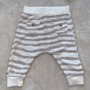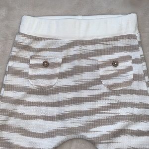 Adorable, 2 piece top and pant outfit. Tan and off white striped print.