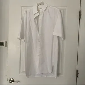 Crisp, white shirt dress with buttons down the front