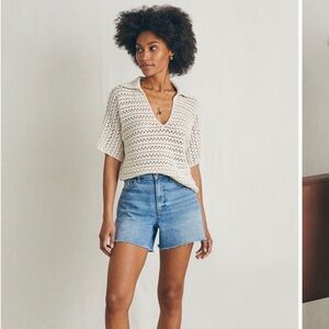 Faherty Nusa Crochet Polo Sweater short sleeve Shirt Top XL & Medium NWT