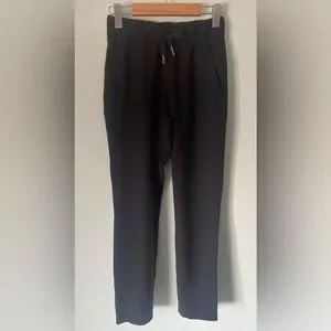 Lululemon On the Fly Pants Black Drawstring Size 2 Pockets Travel Work Neutral