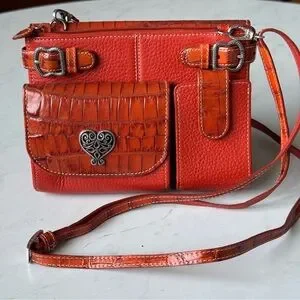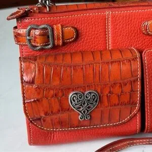 Brighton Burnt Orange Crossbody Organizer Leather Bag near perfect condition