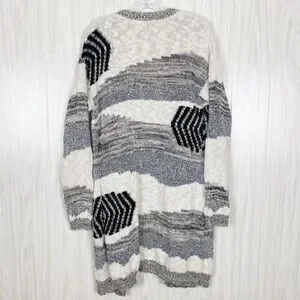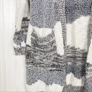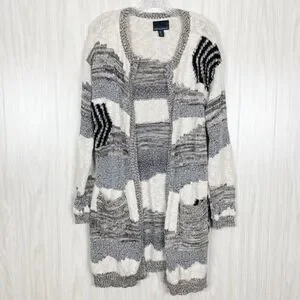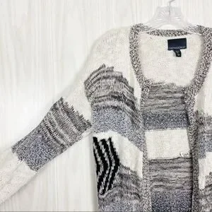 Cynthia Rowley | Black White & Grey Open Front Knit Cardigan Size Large