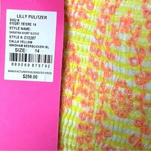 NWT Lilly Pulitzer Sarafina Short Sleeve Eyelet Gingham Yellow Dress Sz 14