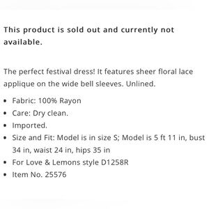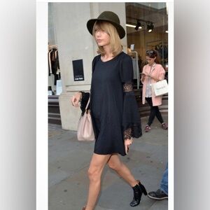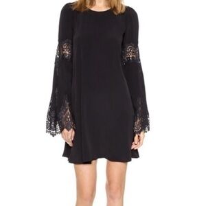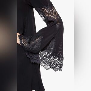 NWT For Love and Lemons Festival Dress in Black. Size Medium- equal to a size 4/6. Features sheer floral lace appliqué on the wide bell sleeves. Dress is unlined.