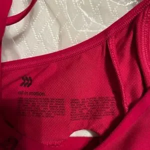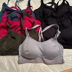 All in motion sports bra, racer back style, high impact style great support no underwire. Variety of colors All size medium (for reference I am a 34D)