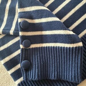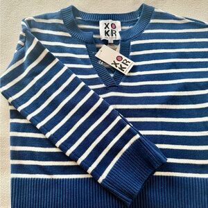 Chic blue sweater with white stripes. Features a unique design by Kerri Rosenthal. Size M brand new.
