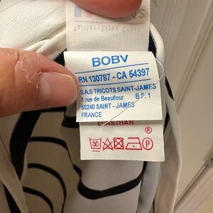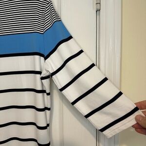 Saint James Brenton Striped Form Fitting Nautical Dress. Blue and White. Black stripes. Excellent condition. US Size 10.