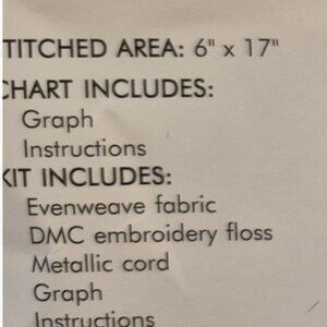 This Fountain Art Glass Design kit is unused but open to display contents. KIT INCLUDES: 28-ct. Evenweave fabric,DMC embroidery floss, 3 rolls of Metallic Cord by kreink metallics and needle. This abstract design is stunning. Stitched area is (14 ct.): 6” x 17” Variations of this pattern were used in windows and doors in the Susan Lawrence Dana House in Illinois (https://dana-thomas.org/wp-content/uploads/2018/11/Art_glass_above_fountain_96.jpg) Stunning.