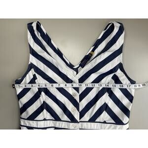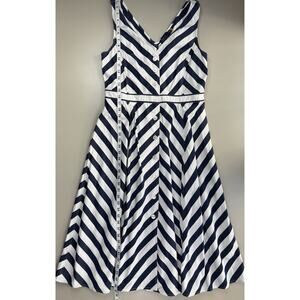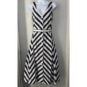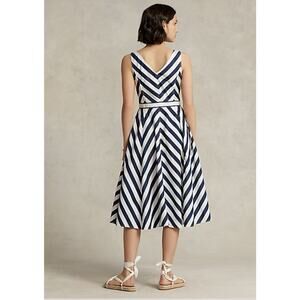 Polo Ralph Lauren Chevron-Stripe Cotton Midi Dress Womens 14 Navy Old Money Prep