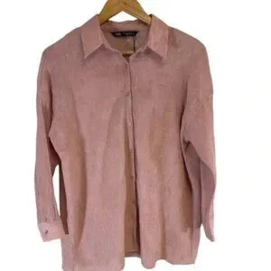 Zara Women’s Button Up Wrinkled Satin Effect Long Sleeve Shirt Size Small