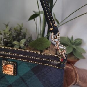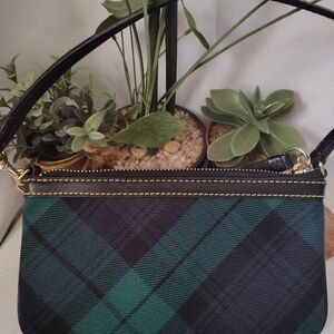 Dooney & Bourke Fabric Green And Blue Plaid Wristlet EUC