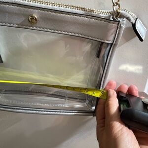 Stylish transparent bag with a chic silver trim and chain. Perfect for any occasion.