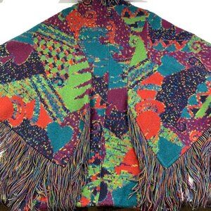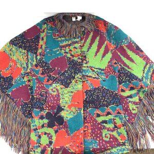 Missoni Vintage 80s 100% Wool Fringe Artsy Colorful Knit Jacket Poncho Women's Medium.