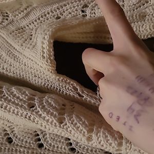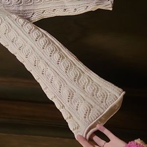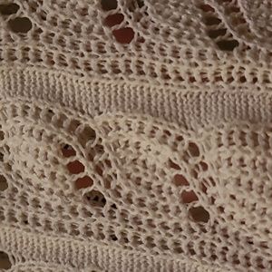 This crop top is very light and flowing. Great for layering or just wearing on its own with a tank top. It has a scoop neck and bell sleeves. There was a hole at the top but it was mended and is unnoticeable now (Pictured) Closet kept, smoke free home.