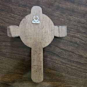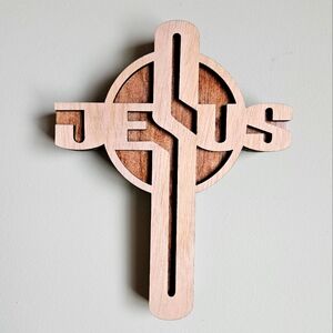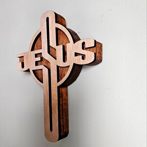 Enhance your home with this elegant wooden Jesus wall cross. The rich brown finish adds warmth to any room.