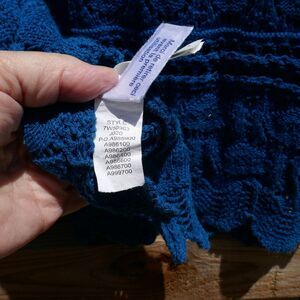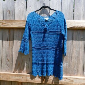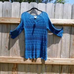 Lucky Brand Sweater Open Knit Crochet Blue Size Medium 3/4 Sleeve Cotton Boho
