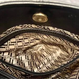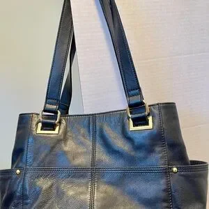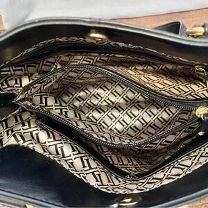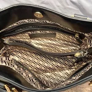 Elegant black genuine Italian leather Tignanello bag with gold accents. Perfect for any occasion.