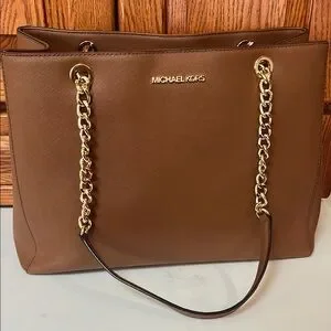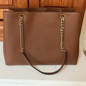 Elevate your style with this elegant brown leather tote bag from Michael Kors. Perfect for any occasion, this bag combines luxury and functionality.