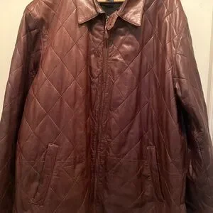 Mens Polo by Ralph Lauren brown quilted leather driving coat with a wool lining.