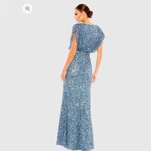 MAC DUGGAL Blue Draped Sleeve V Neck Gown size 18 NWT