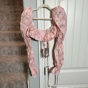 Tags; pink, girly, floral, crop top, long sleeve, party, date night, revolve