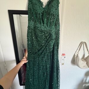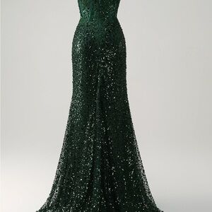 Shine in this stunning green sequin evening gown. Perfect for special occasions, this dress offers a glamorous look with its shimmering design. Never worn, only tried on. Didn’t come with tags.