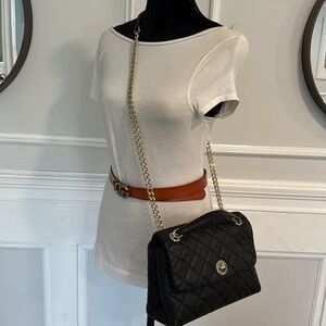 Kate Spade Bag Black Quilted Vegan Leather Gold Chain Shoulder / Crossbody