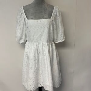 A.New Day dress SZ L eyelet girlhood core feminine cottagecore puff sleeves