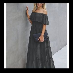 Black Summer Off-Shoulder Maxi Dress Sheer