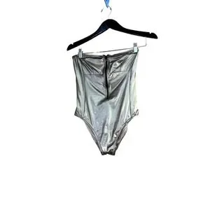 J Crew size 6 metallic gold glamorous strapless front zip bodysuit brand new