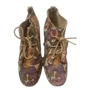 Experience the perfect blend of style and comfort with these Hush Puppies lace-up chukkas. Featuring a striking butterflies in a combination of purple, green and brown, these boots are designed to make a statement. The lace-up design ensures a secure fit, while the durable sole provides excellent traction for everyday wear.