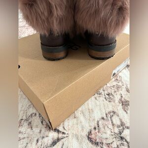 COPY - UGG Otelia Coconut Leather Sheepskin Cuff Ankle Mini Boots Booties Size …
