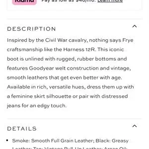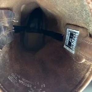 timeless style in beautifully broken-in condition with lots of character—these boots only get better with age. goodyear welt construction and heavy duty craftsmanship mean these can be resoled time and time again to last a lifetime, but original soles still have life left. original owner, non-smoking, dog-friendly home. no odors (besides wonderful scent of leather). believe these are the ‘tan’ color if i remember correctly, but appear more medium to dark brown with lighter brown variations/distressing from movement and wear. hate to part with these, they just don’t fit my wide feet comfortably anymore. true to size otherwise. happy to answer any questions!