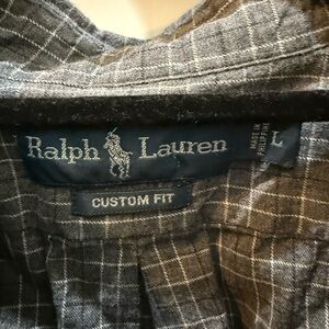 This Ralph Lauren shirt in a sophisticated gray hue is perfect for casual outings. Crafted from lightweight cotton, it offers comfort and style with its classic button-down design. Ideal for adding a touch of elegance to your everyday look.