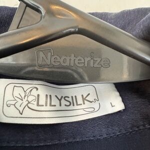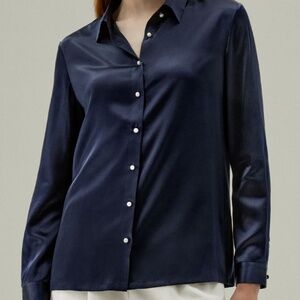 LilySilk Classic Pearl Button Silk Shirt. Navy Blue. Size L. Very good condition. Last photo from site. Fabric is 100% pure 22MM mulberry silk.