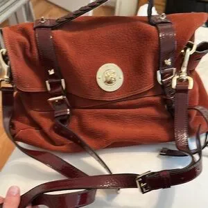 This stylish Mulberry Alexa satchel showcases a warm rust colored leather exterior accented with gold-toned hardware, and fox details exuding a timeless elegance. Its classic design features a flap closure and offers versatile carrying options with both hand and shoulder straps. Ideal for adding a touch of sophistication to any ensemble. Fox lock maxi grain nubuck leather style. Comes with dust bag.