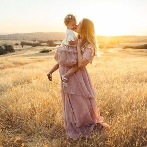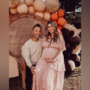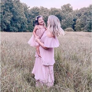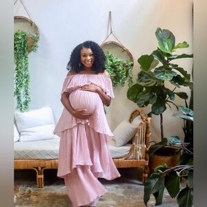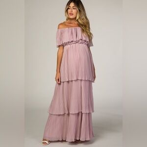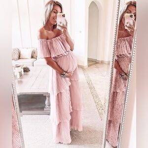Pinkblush pleated tiered off the shoulder maxi dress nwot