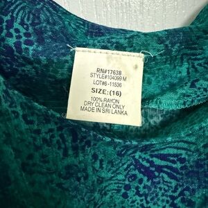 Pretty aqua/blue green long sleeveless dress size 16. 100% Rayon - pit to pit measures 21” - slits on either side of dress bottom approx 8” to make walking easy.