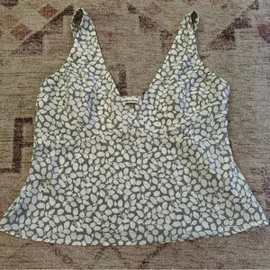 Abercrombie and Fitch White and blue floral print tank top with a V neckline and adjustable straps.