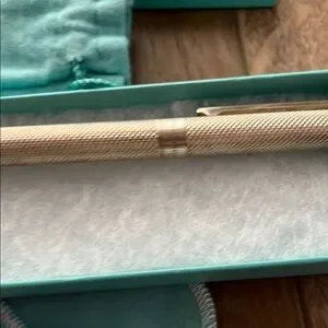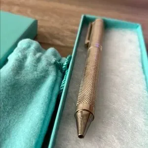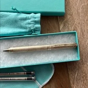 Elevate your writing experience with the Tiffany & Co. pen. This elegant accessory combines luxury and functionality, making it a perfect gift or personal indulgence. Used item, have not tried to buff out. Will include 2 ink refills shown as well as bag and box shown.