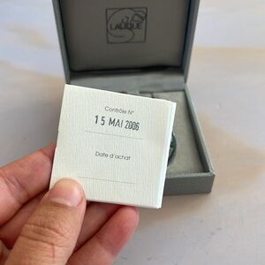 Elegant Lalique silver crystal with enamel unique design. Comes in original box. New in box never worn. Includes original purchase card. Make an offer!