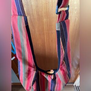 In great condition, only lightly used, Kavu bag with a funky stripe design. The greens and purples and red stripes, among other colors, are vibrant. Zippered pockets on the straps, the whole bag and one inside zippered pocket and it has a clip attachment inside the bag as well. Thanks for poshing!
