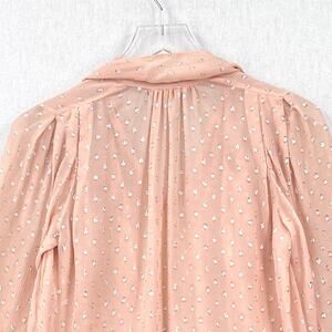 REBECCA TAYLOR Sheer Ruffle Trim Blouse Womens 0 Pink Silver Dot Tie Neck Top