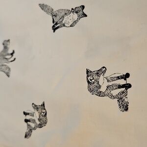 23 pit to pit, 28" shoulder to hem. Amazing shirt with cute fox details. Slight rust color on bottom of front hem, I did not try to wash. Tuck it in or it is barely noticeable.