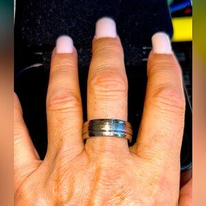 Elevate your style with the Titanium Unisex Ring. Great thumb ring or middle finger for gals or great wedding band or ring for your beau. Size 9