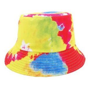 Red & Yellow Rainbow Tie Dye Reversible Bucket Hat Cap NWT